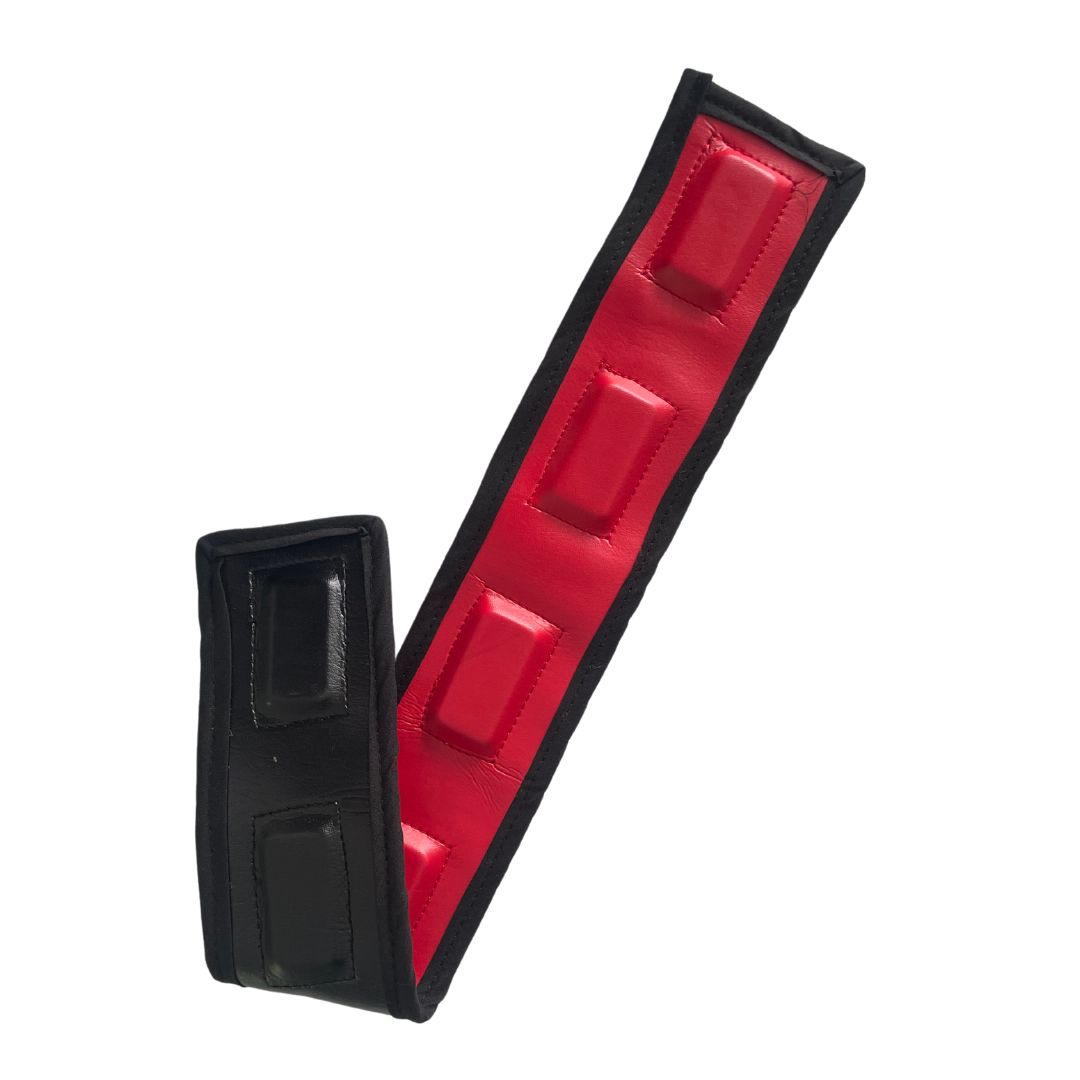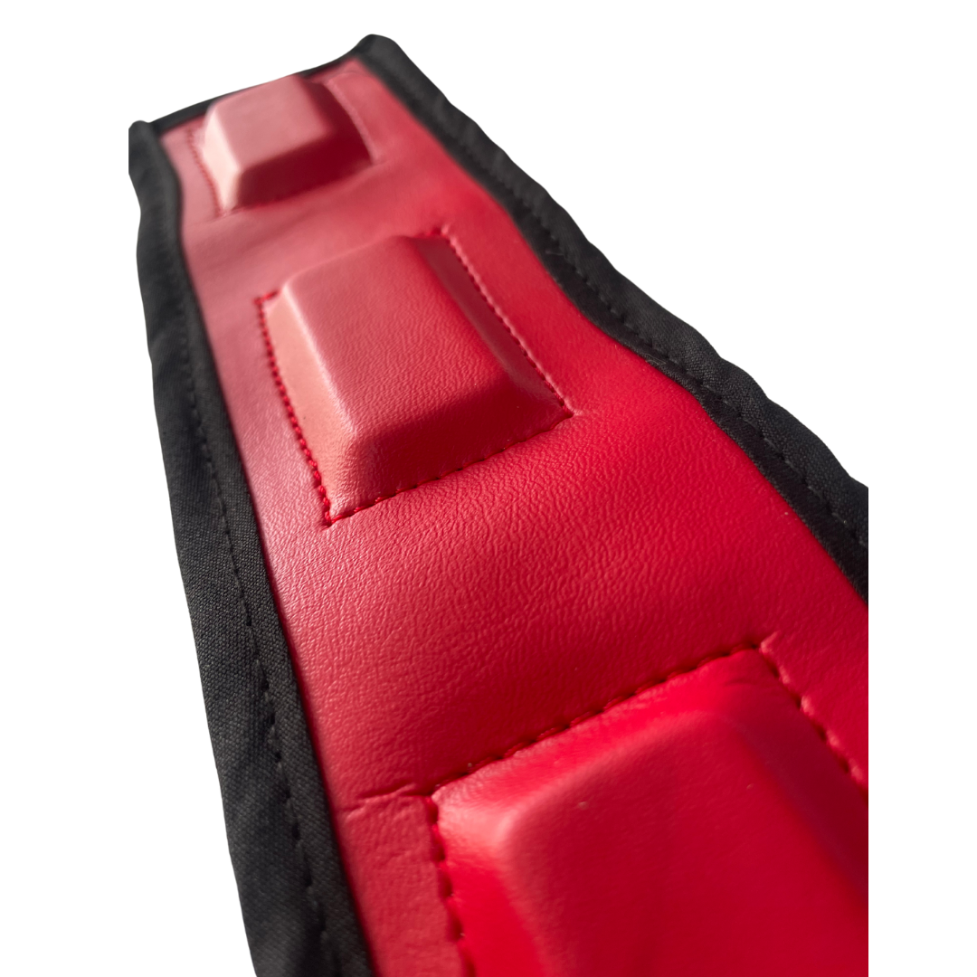 Detalles: Ideal para la aplicación de Par Biomagnético en mayores zonas. Forrado de vinil rojo y negro, pegado y cosido.